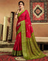Red Silk Printed Zari Stripe Saree