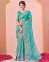 Turquoise Shimmer Net Embroidery Swarovski Saree