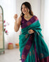 Teal Green Silk Woven Saree