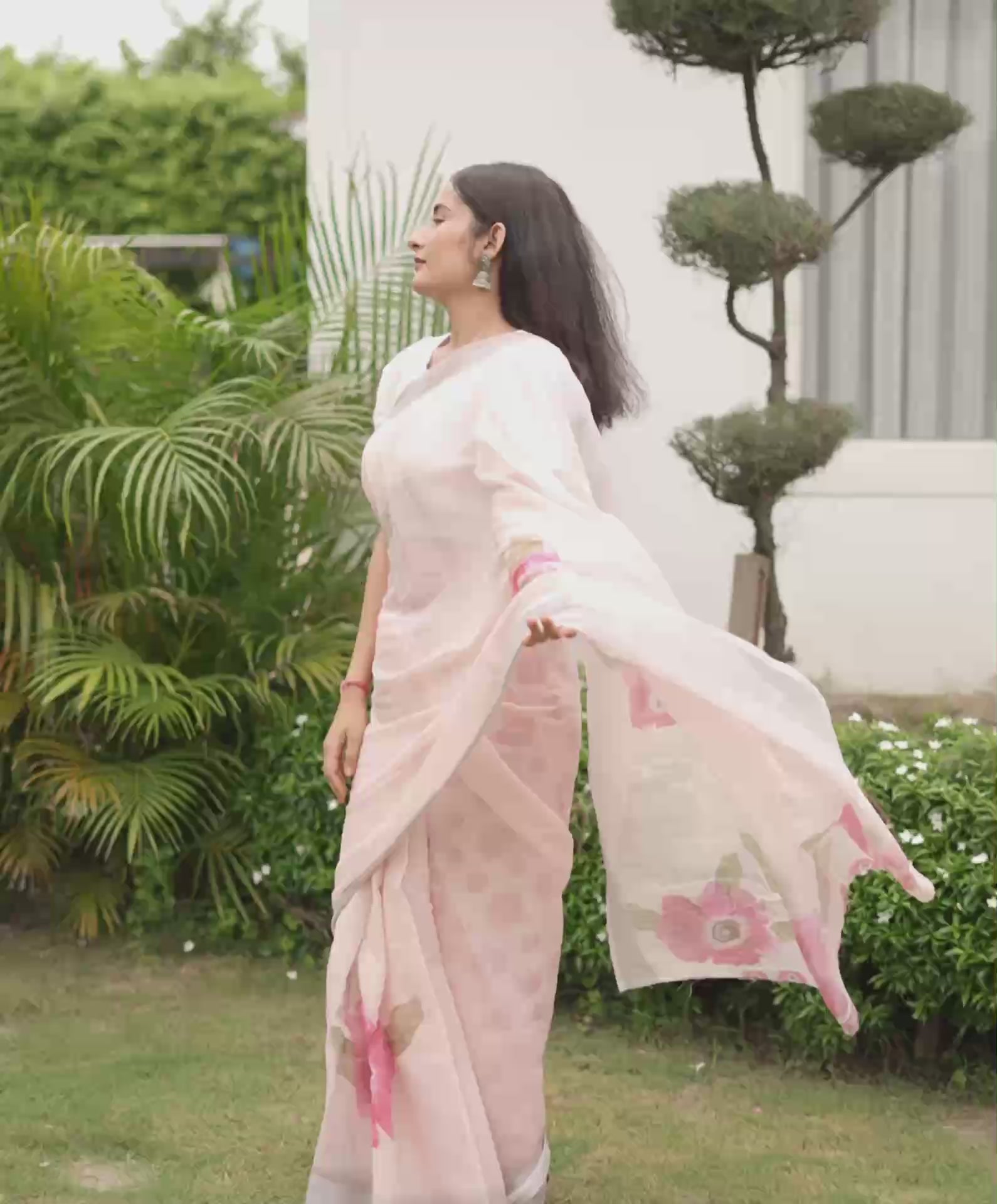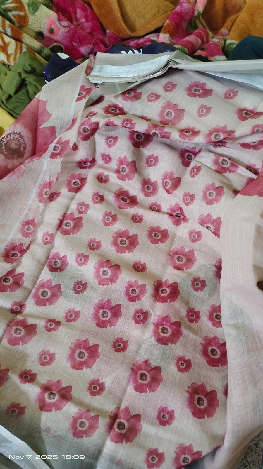 Light Pink Cotton Linen Printed SareeLight Pink Cotton Linen Printed Saree- Regular price