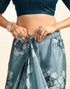 Ready To Wear Dusty Teal Blue Chinnon Floral Printed Saree