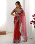 Wine Organza Embroidery Lace SareeWine Organza Embroidery Lace Saree