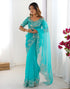 Turquoise Blue Organza Sequence Embroidery Saree