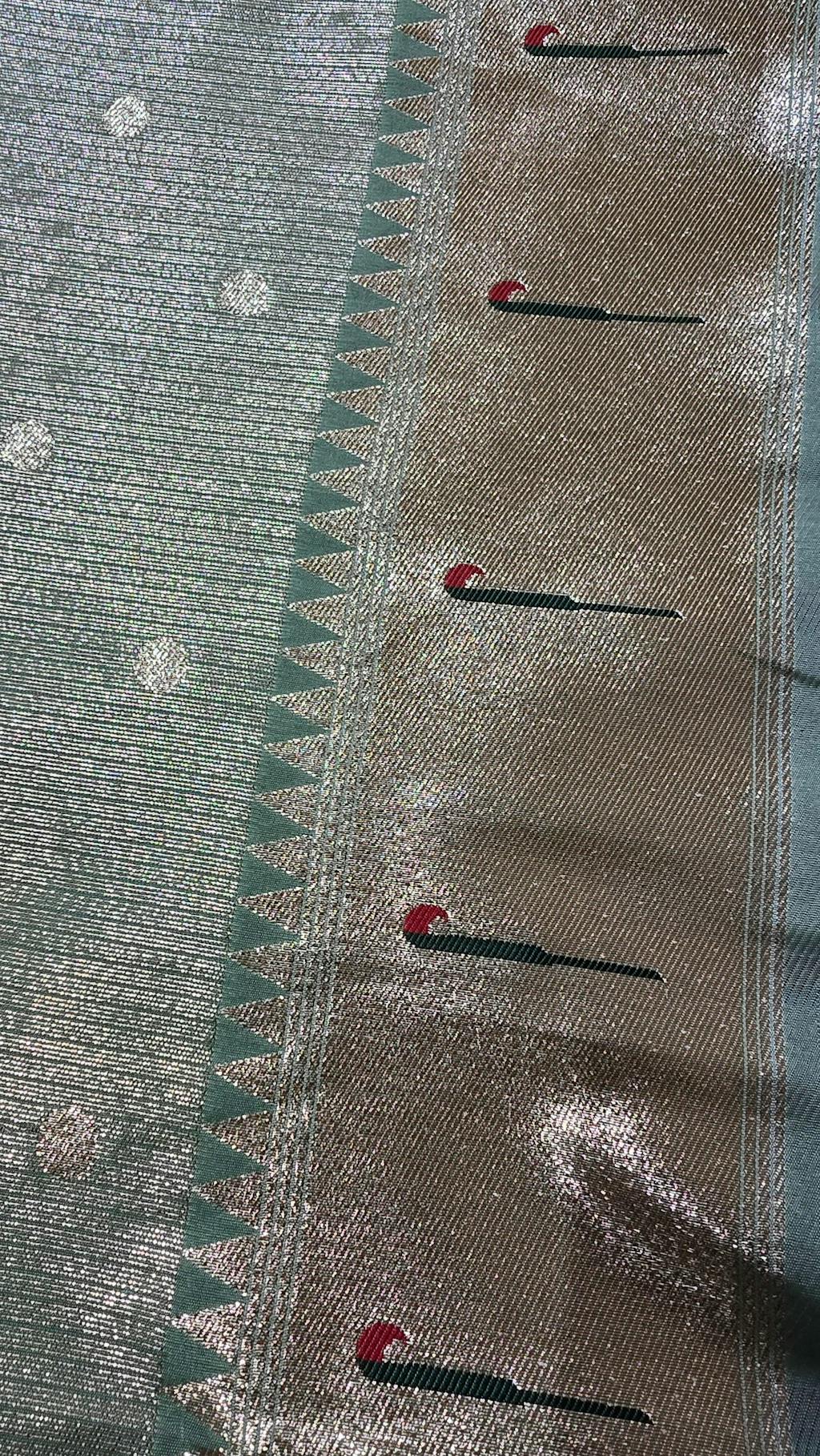 Dusty Blue Silk Woven Paithani SareeDusty Blue Silk Woven Paithani Saree- Regular price