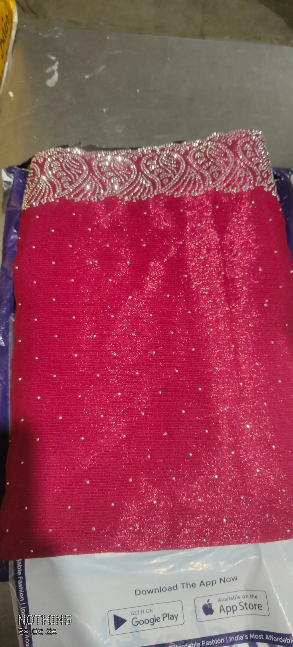 Dark Pink Shimmer Stone Work Swarovski Saree