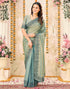 Dusty Teal Blue Shimmer Stone Work Swarovski Saree