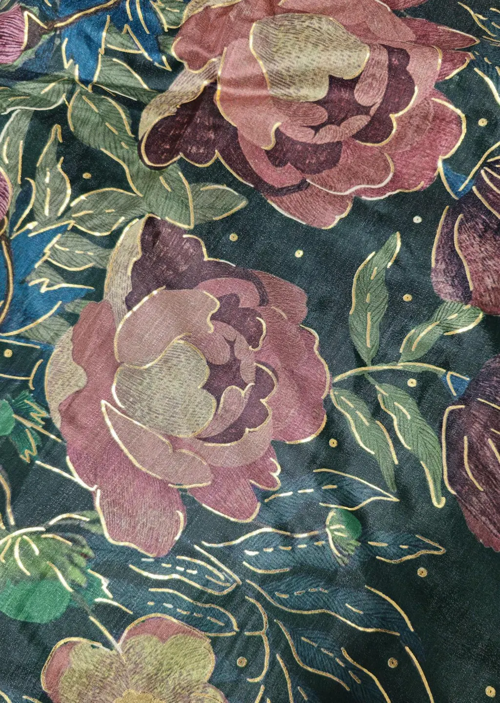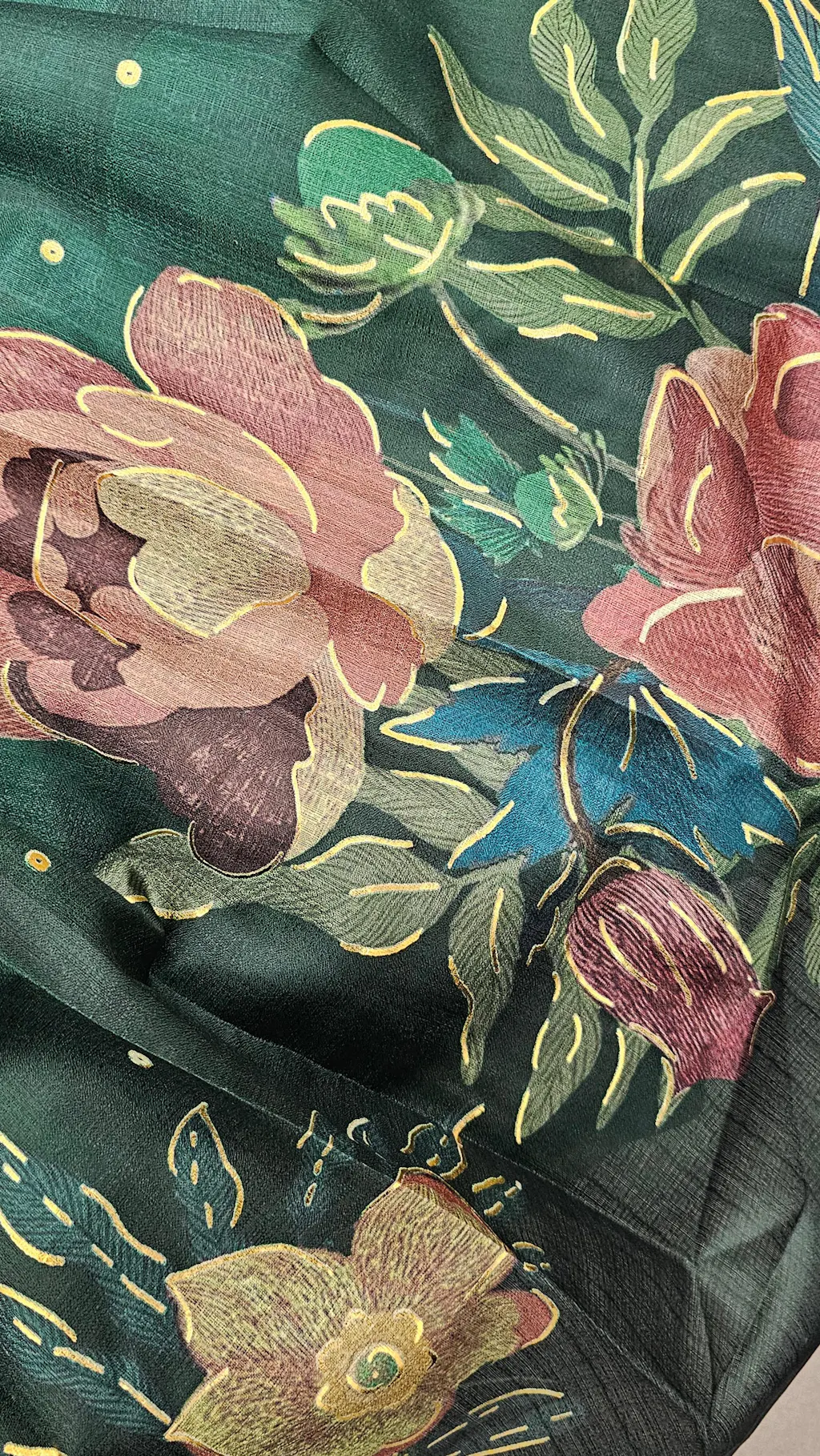 Mouni Roy Green Floral Blossom Ready To Wear Foil Saree