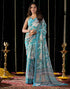 Dusty Blue Georgette Printed Saree