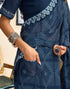 Ready To Wear Blue Cotton Printed Saree With Pocket