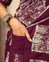 Ready To Wear Wine Cotton Printed Saree With Pocket
