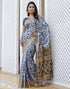 Grey Cotton Blend Printed Saree