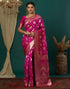 Pink Silk Blend Woven Banarasi Saree