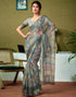 Ready To Wear Dusty Green Printed Linen SareeReady To Wear Dusty Green Printed Linen Saree