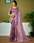 Ready To Wear Purple Printed Linen SareeReady To Wear Purple Printed Linen Saree