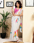 Ready To Wear White Pure Cotton Floral Printed Saree With PocketReady To Wear White Pure Cotton Floral Printed Saree With Pocket