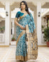 Teal Blue Cotton Blend Printed Saree