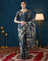 Dark Blue Grey Printed Silk Saree