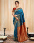 Teal Blue Silk Woven Banarasi SareeTeal Blue Silk Woven Banarasi Saree