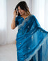 Peacock Blue Tissue Silk Embroidery SareePeacock Blue Tissue Silk Embroidery Saree