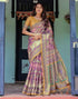 • Beige Shimmer Silk Printed Kalamkari Saree
