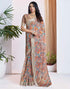 Ready To Wear Light Brown Linen Woven Border Printed Saree