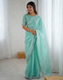 Peacock Blue Tissue Silk Embroidery SareePeacock Blue Tissue Silk Embroidery Saree