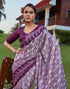 Wine Cotton Blend Ikkat Printed Saree