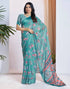 Ready To Wear Dusty Turquoise Georgette Floral Printed Saree