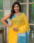 Yellow Linen Woven Saree