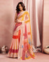 White Cotton Linen Printed SareeWhite Cotton Linen Printed Saree