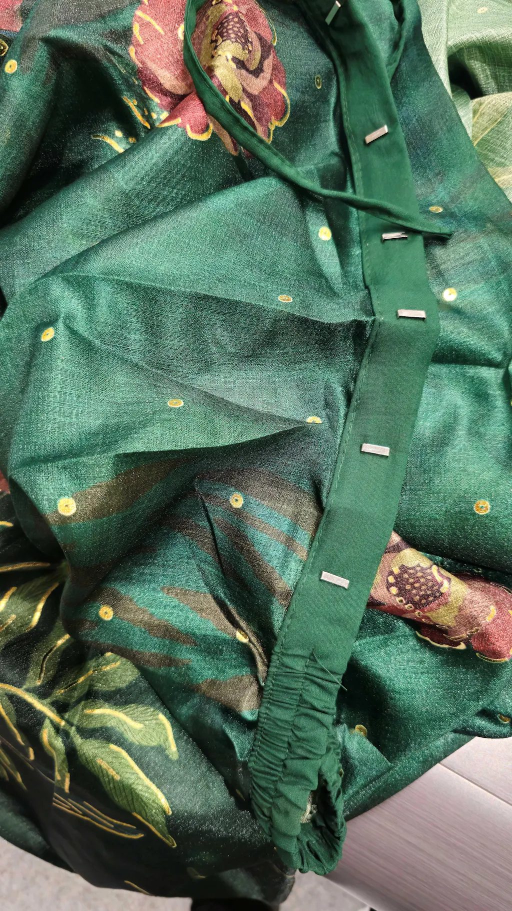 Mouni Roy Green Floral Blossom Ready To Wear Foil Saree