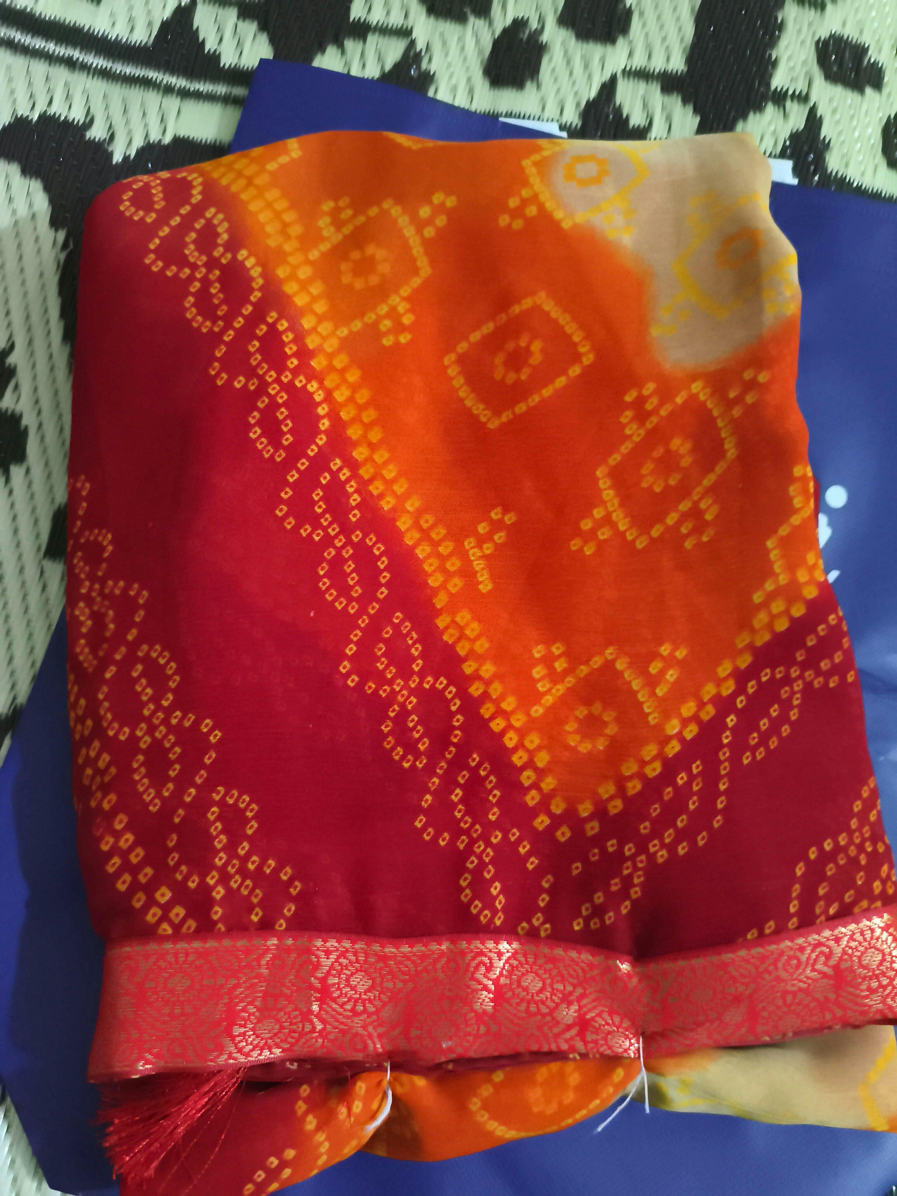 Red Chiffon Printed Bandhani SareeRed Chiffon Printed Bandhani Saree- Regular price