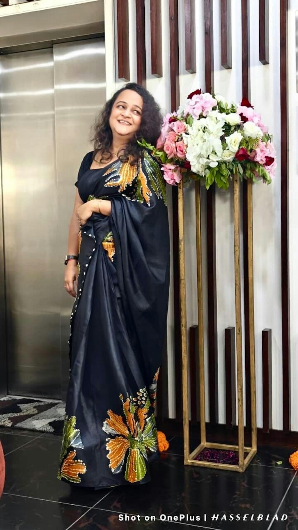 Black Vichitra Silk Printed SareeBlack Vichitra Silk Printed Saree- Regular price