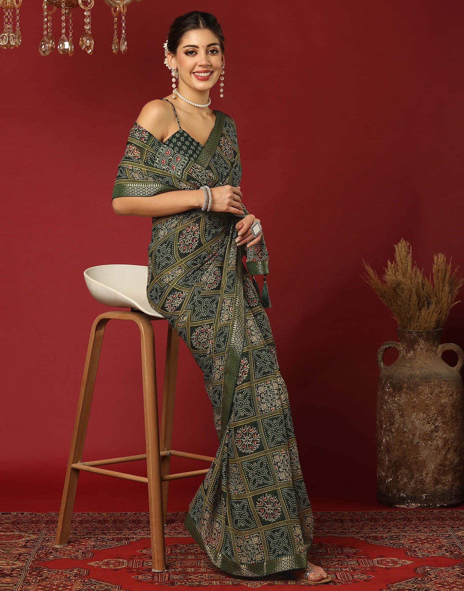 Dark Green Georgette Printed Bandhani SareeDark Green Georgette Printed Bandhani Saree- Regular price