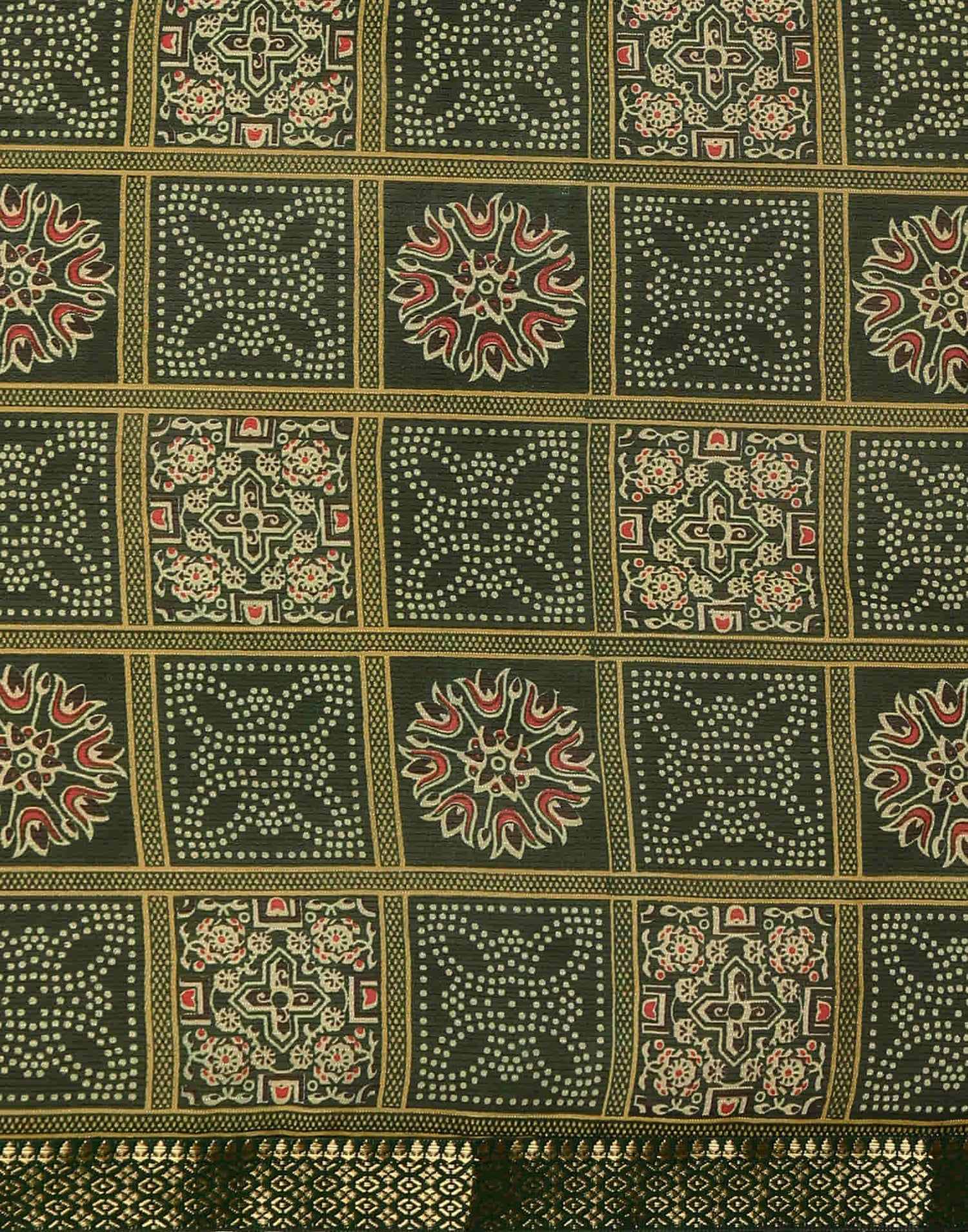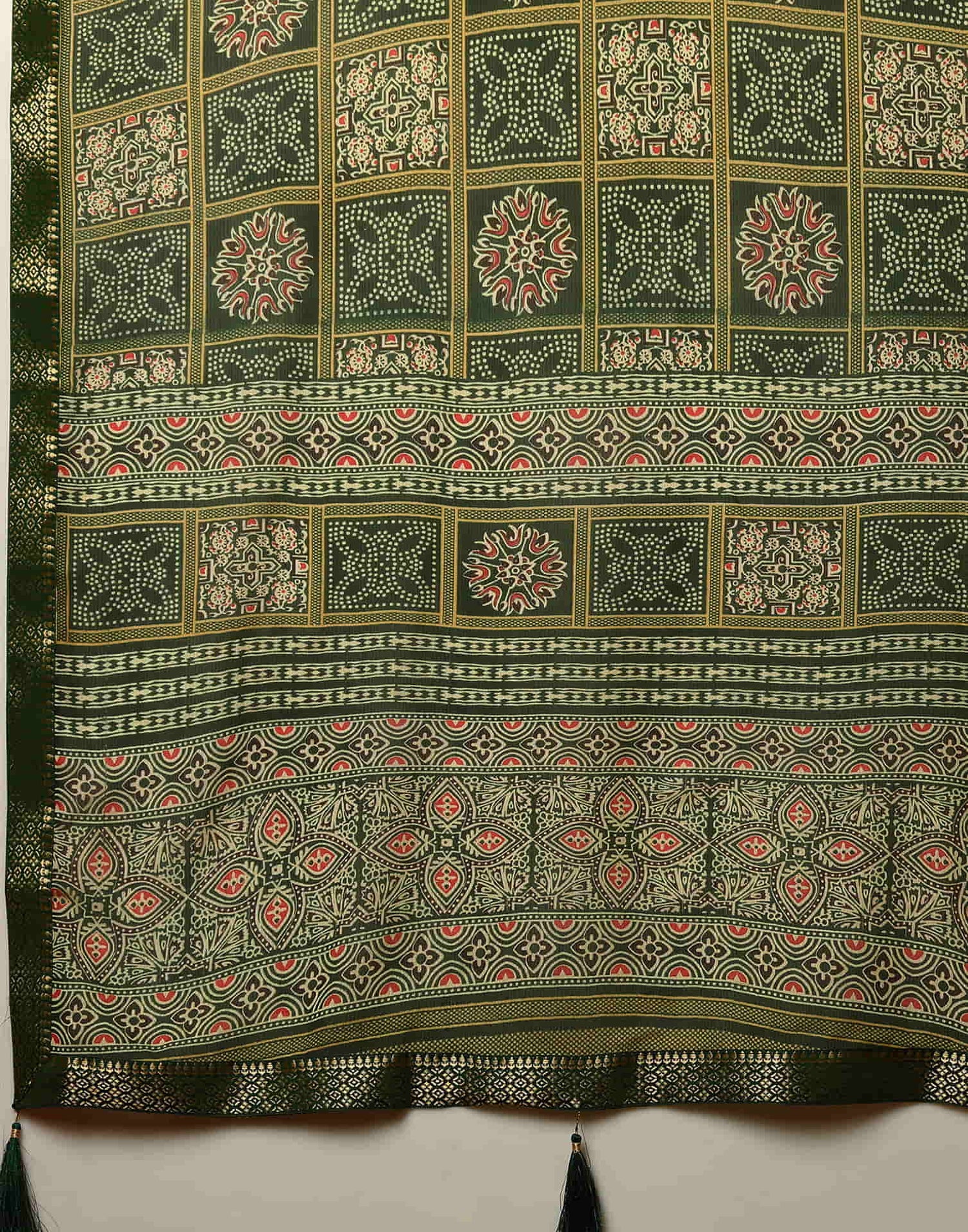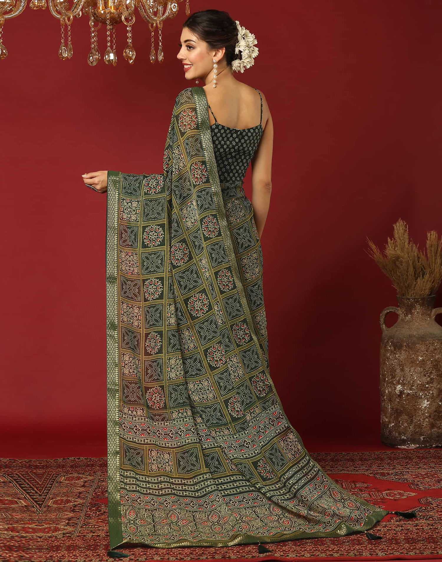 Dark Green Georgette Printed Bandhani Saree