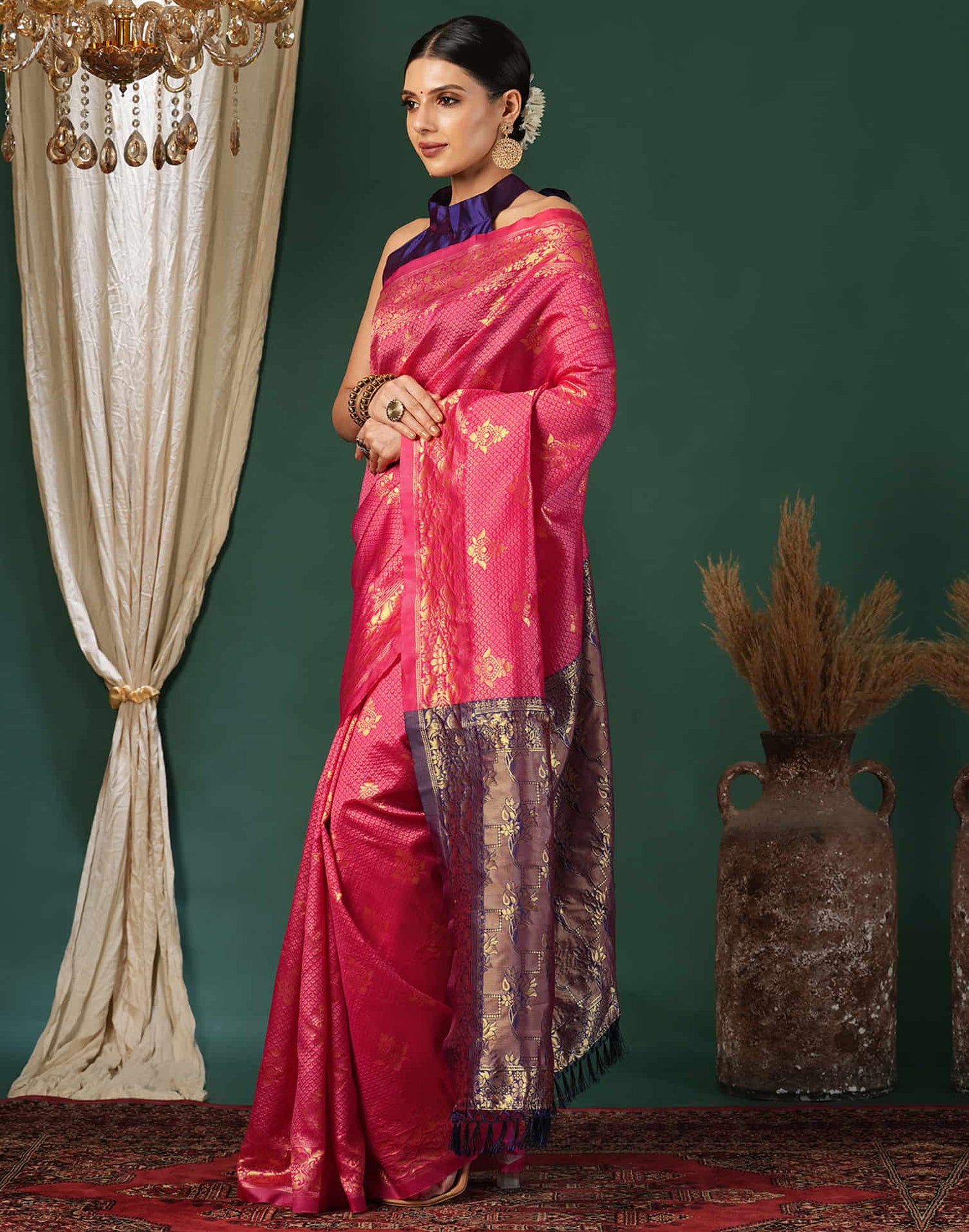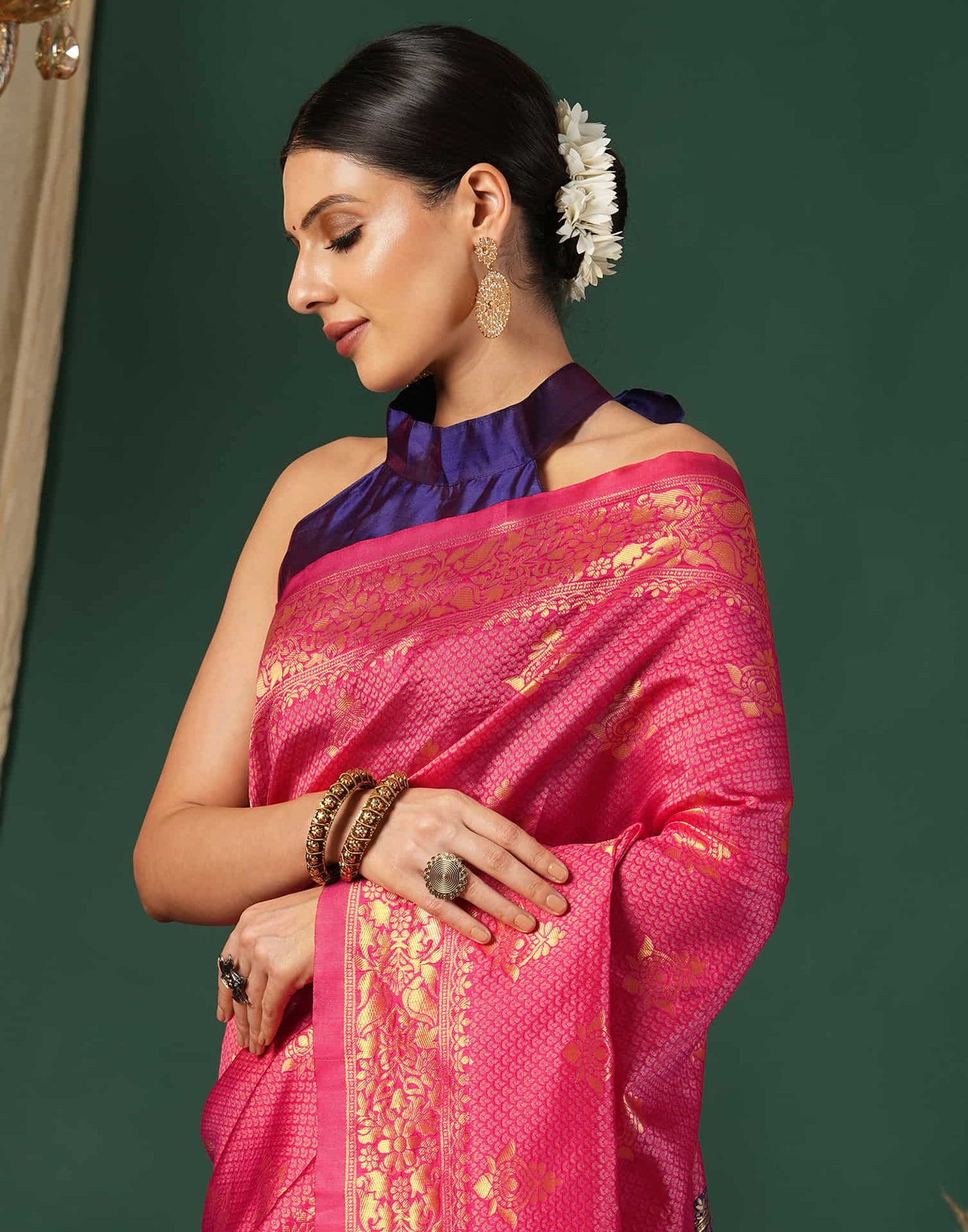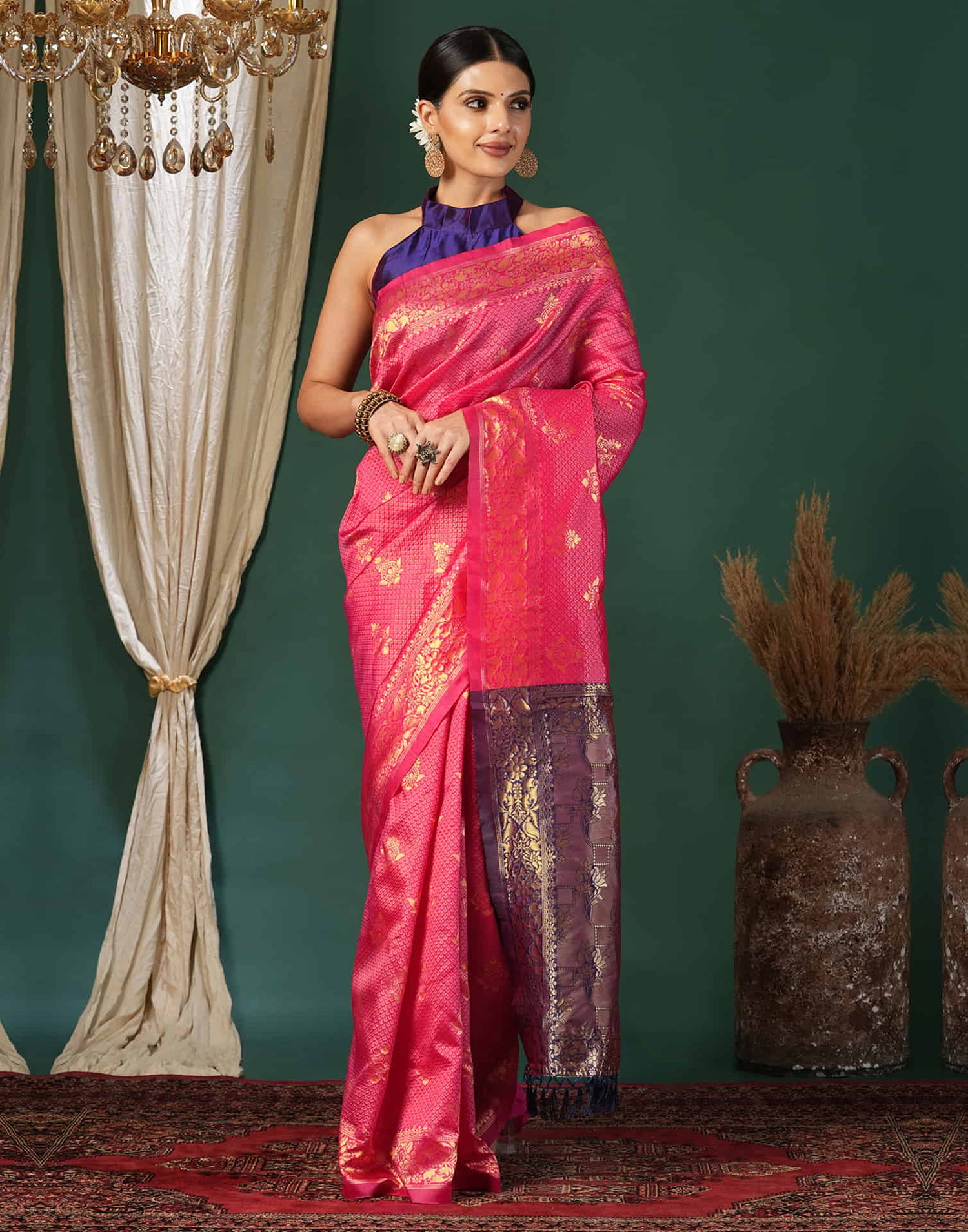 Magenta Silk Woven Banarasi SareeMagenta Silk Woven Banarasi Saree- Regular price