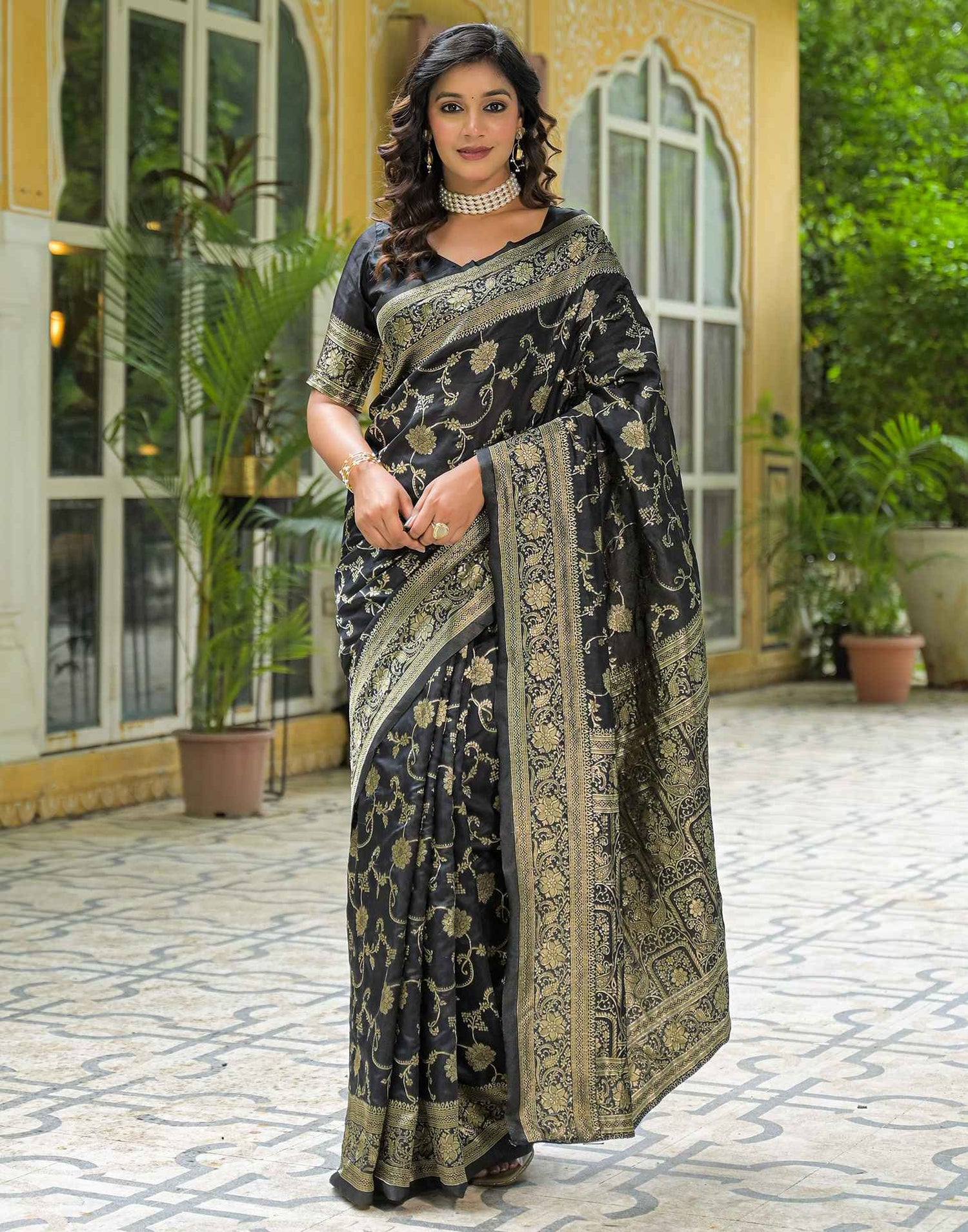 Black Silk Woven Banarasi SareeBlack Silk Woven Banarasi Saree- Regular price