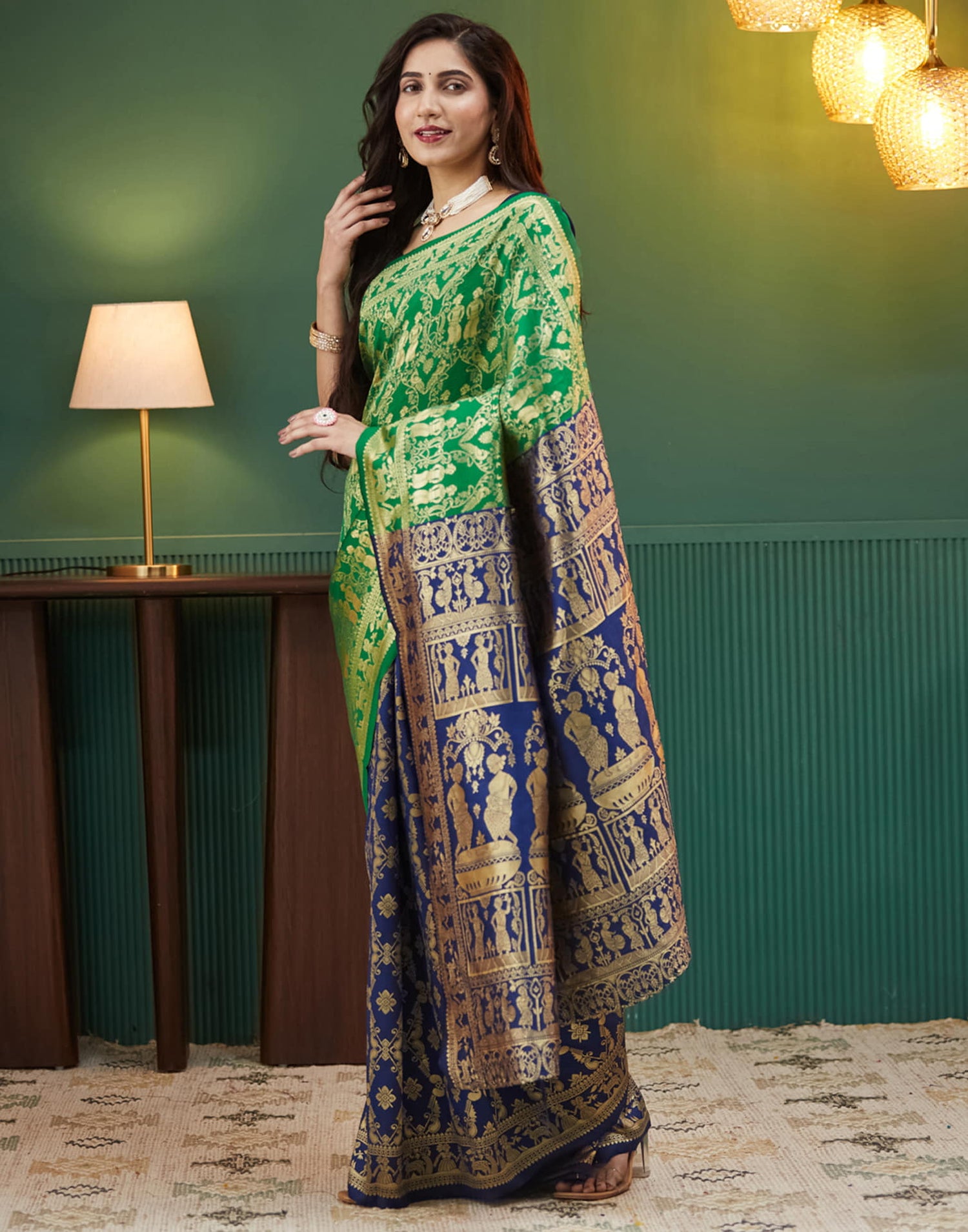 Navy Blue Silk Woven Banarasi Saree