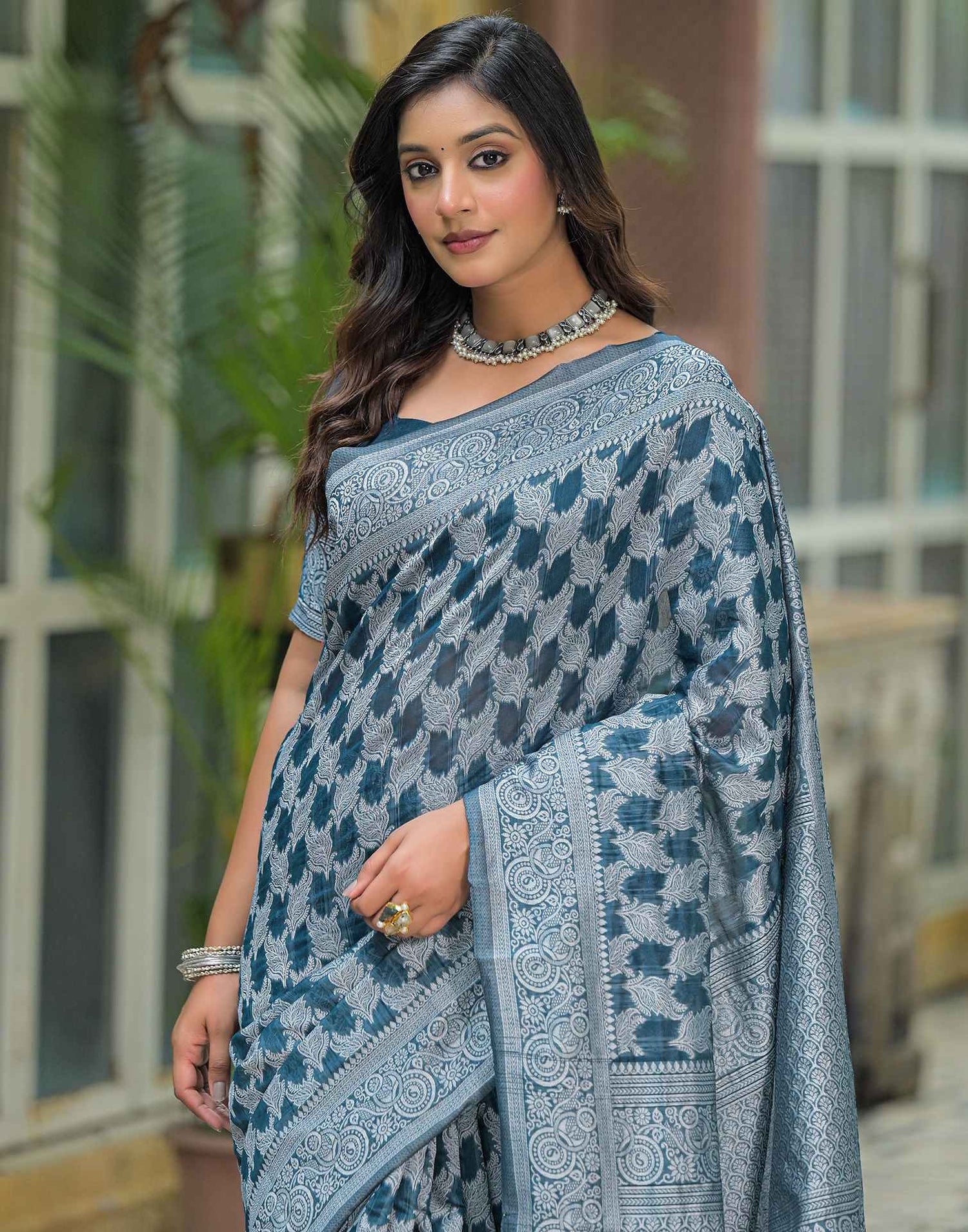 Teal Blue Silk Woven Banarasi SareeTeal Blue Silk Woven Banarasi Saree- Regular price
