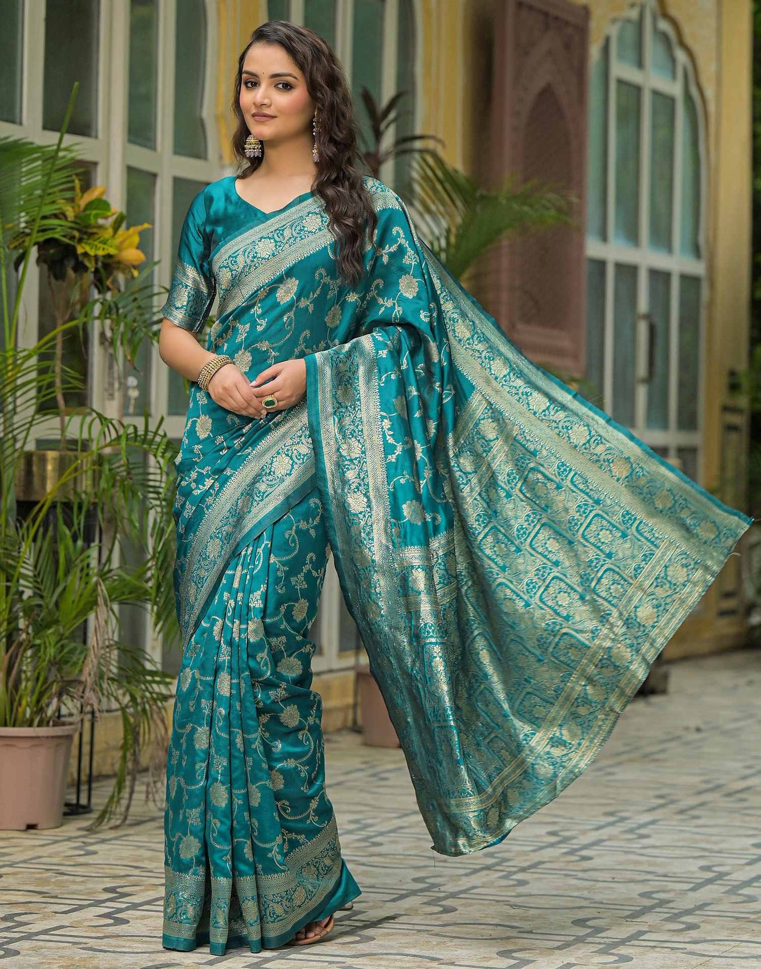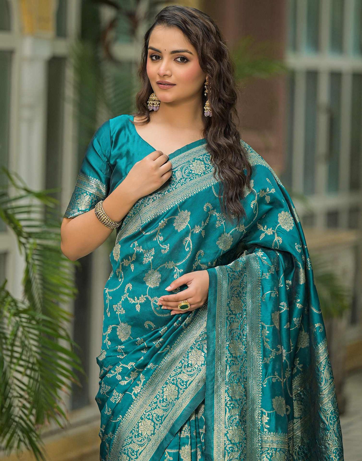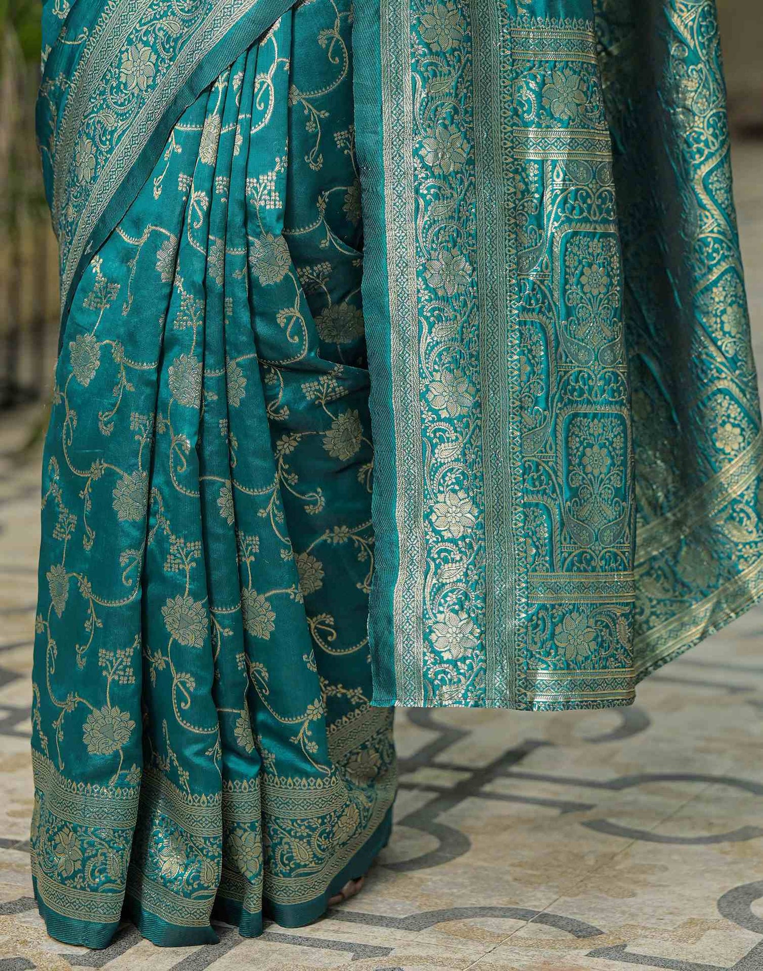 Teal Blue Silk Woven Banarasi SareeTeal Blue Silk Woven Banarasi Saree- Regular price