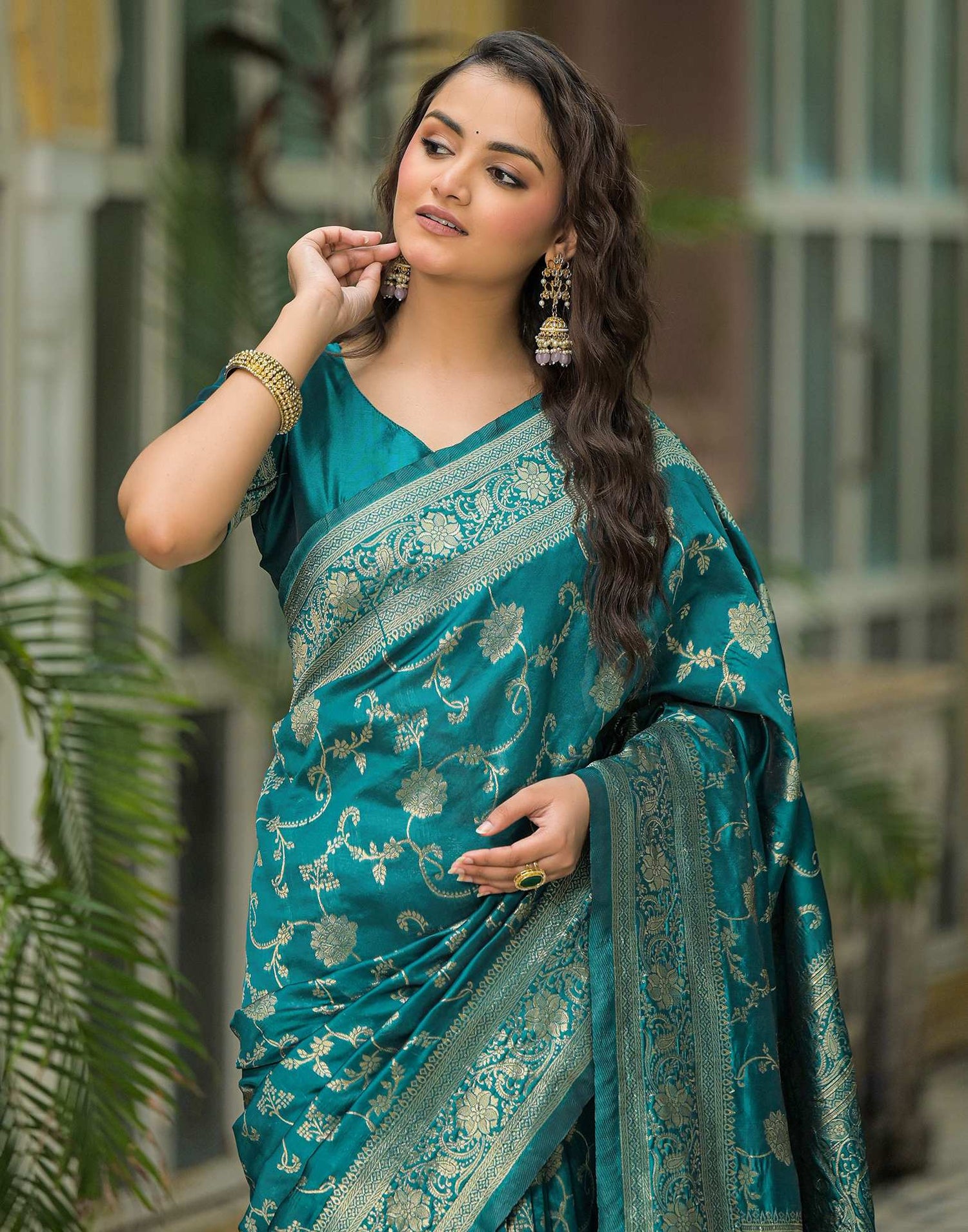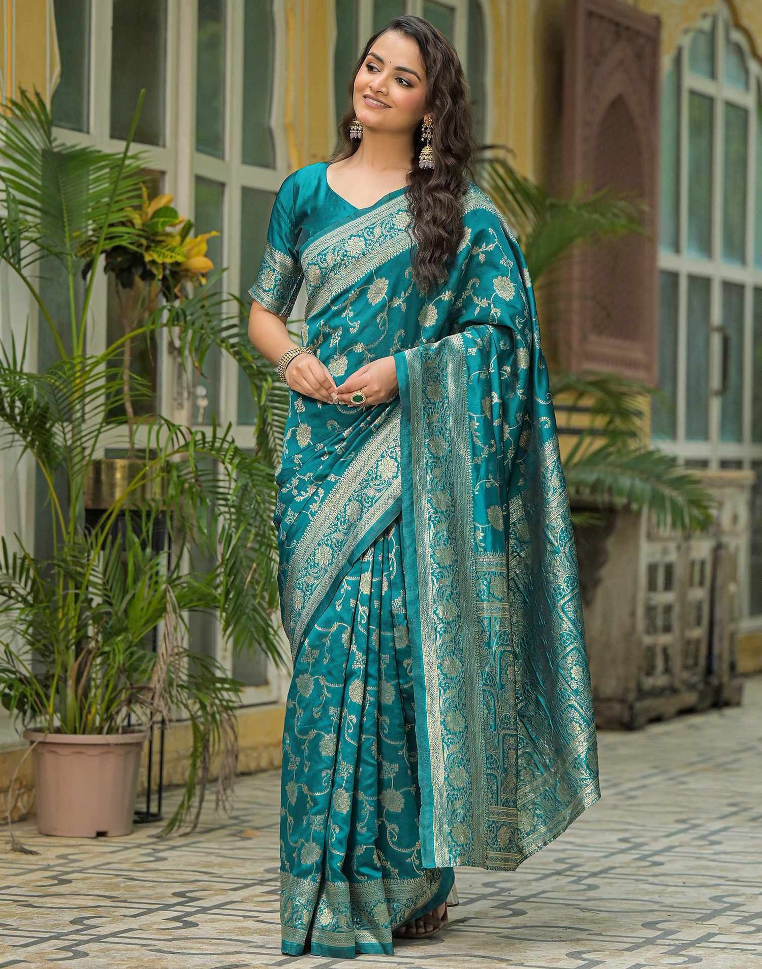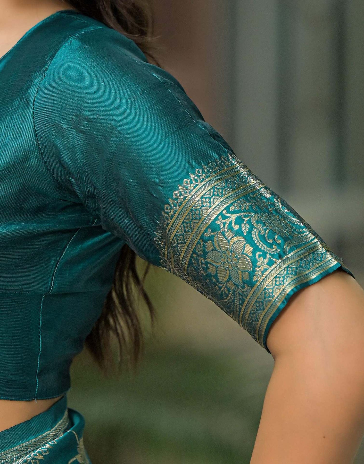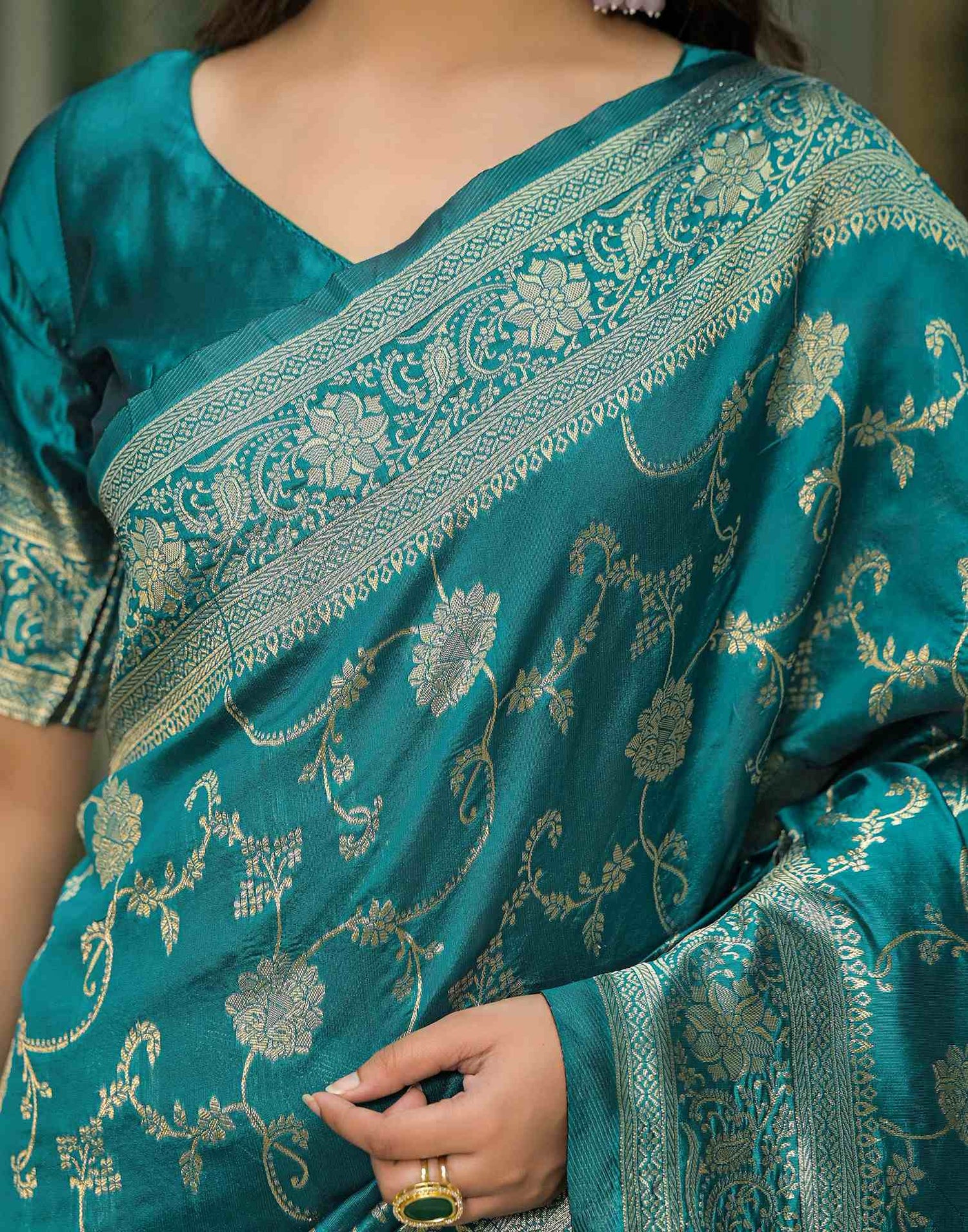 Teal Blue Silk Woven Banarasi SareeTeal Blue Silk Woven Banarasi Saree- Regular price