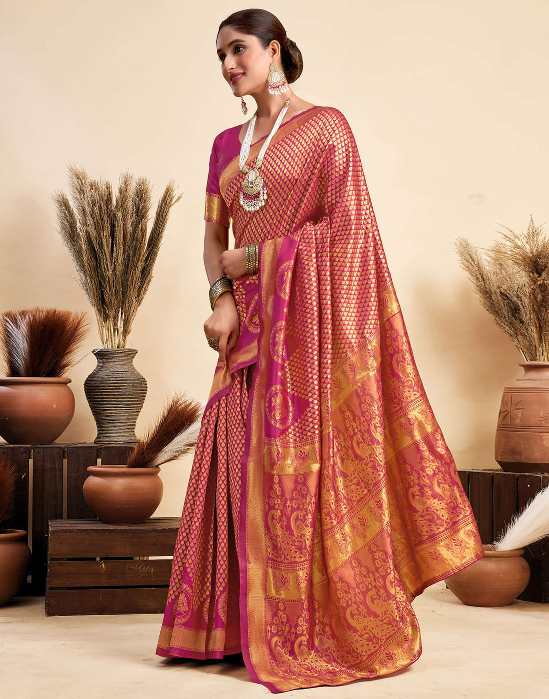 Rani Pink Silk Woven Kanjivaram SareeRani Pink Silk Woven Kanjivaram Saree- Regular price