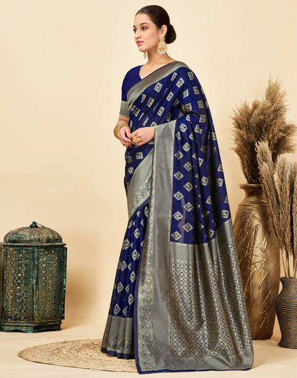 Navy Blue Silk Woven Banarasi Saree