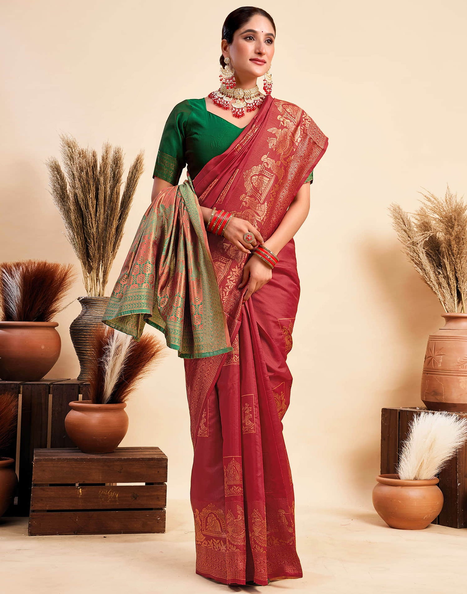 Red Silk Woven Banarasi SareeRed Silk Woven Banarasi Saree- Regular price
