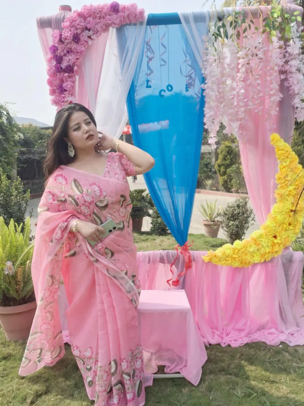 Baby Pink Cotton Floral Printed Saree