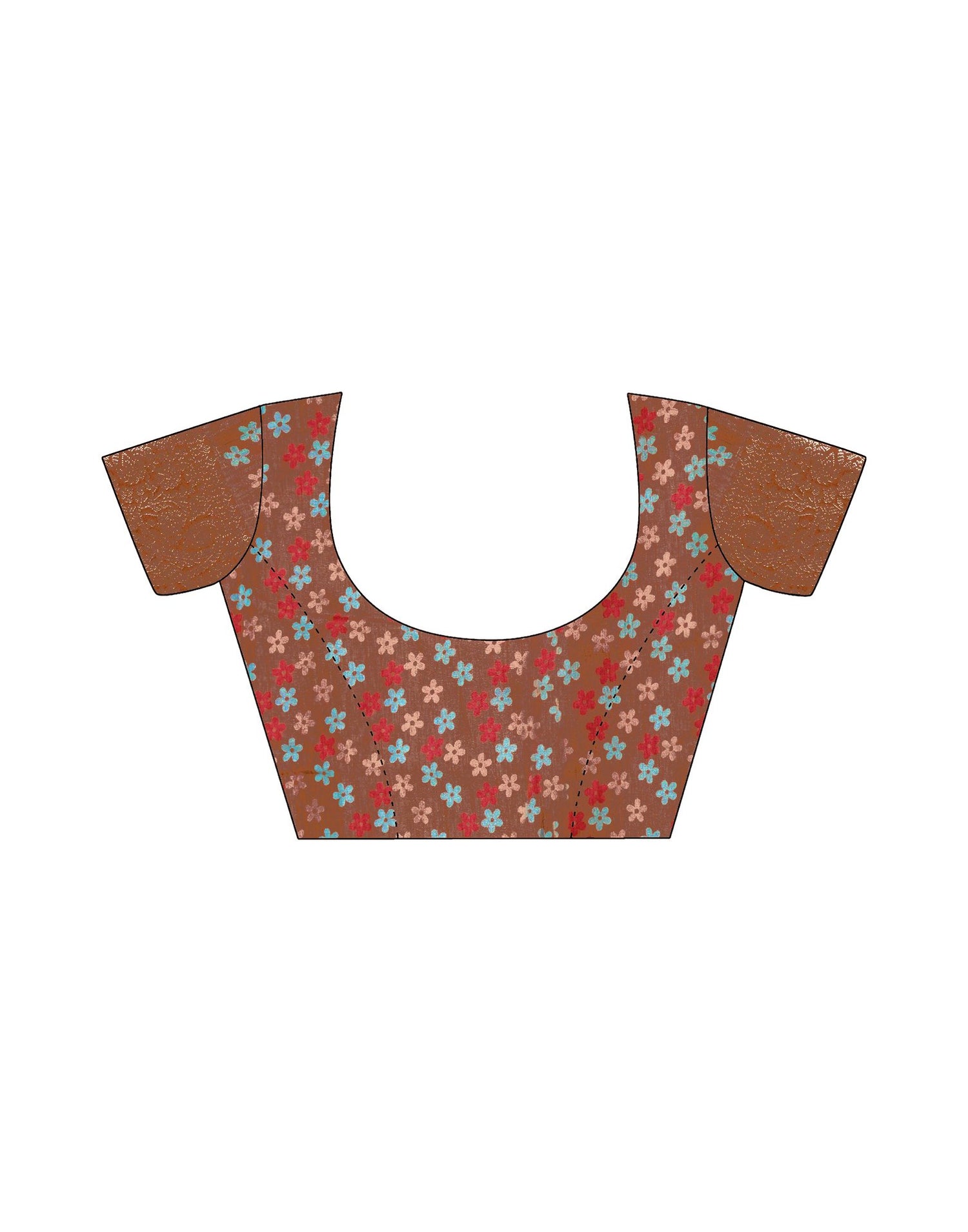 Bronze Brown Dola Silk Floral Printed Leheriya Saree