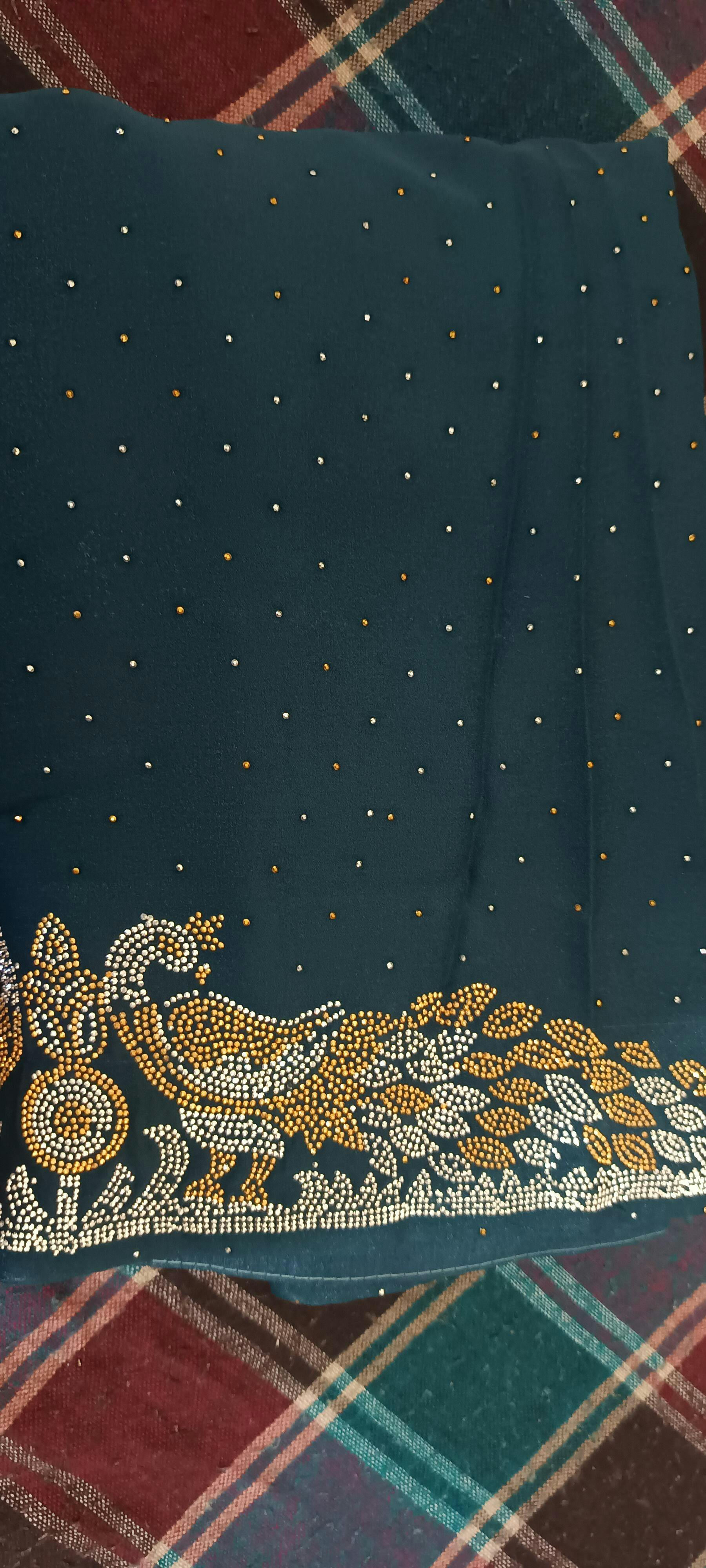 Dark Green Shimmer Stone Work Swarovski SareeDark Green Shimmer Stone Work Swarovski Saree- Regular price
