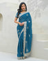 Dusty Teal Blue Shimmer Embroidery Saree