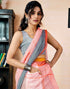 Ready To Wear Peach Linen Printed Saree With PocketReady To Wear Peach Linen Printed Saree With Pocket