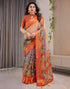 Orange Linen Printed Saree